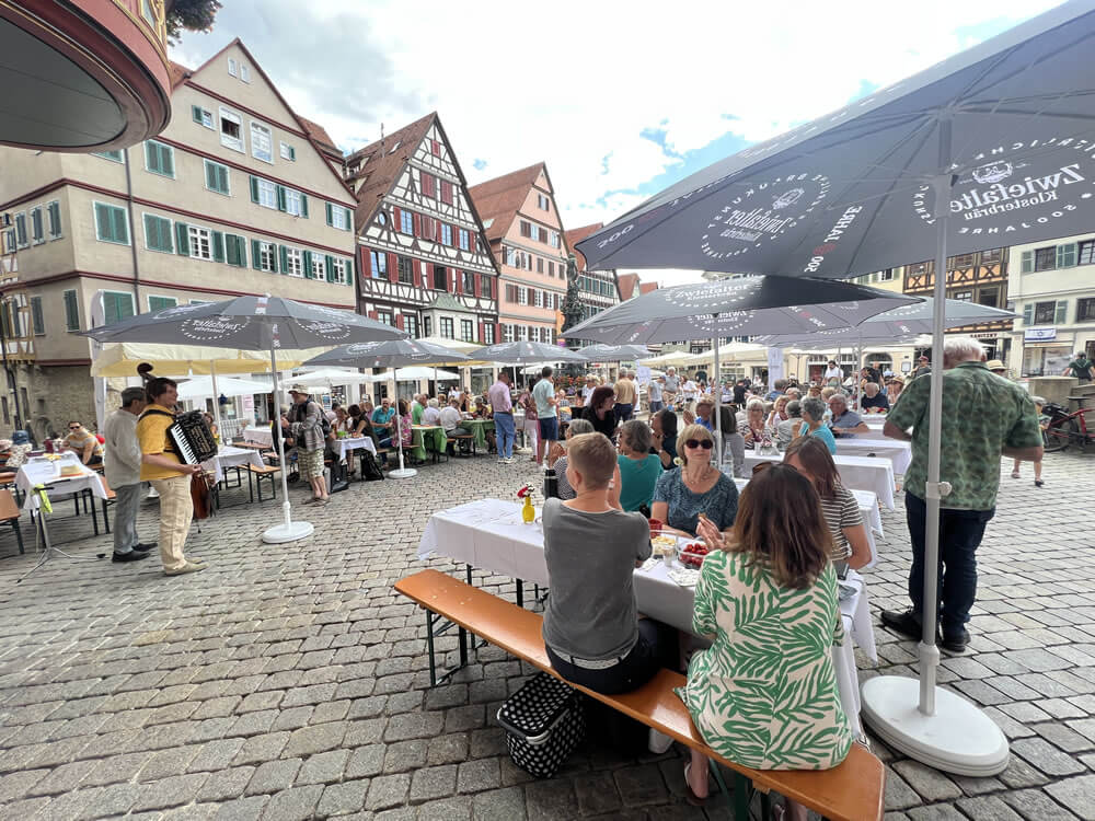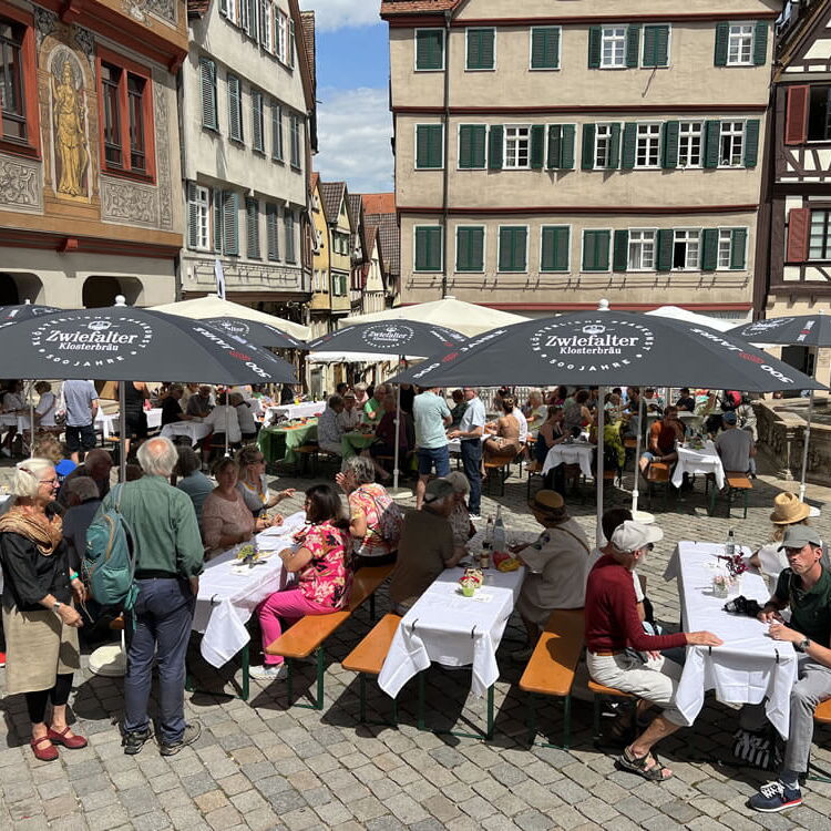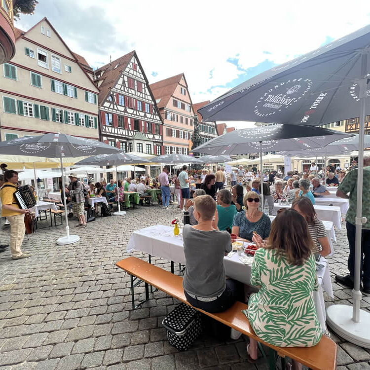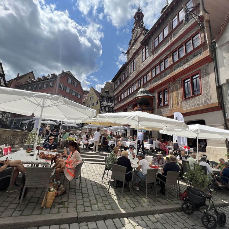 Wie schon in den Vorjahren sind alle Tübinger Bürgerinnen und Bürger zu einem gemeinsamen Frühstück auf dem wunderschönen Marktplatz eingeladen. In ungezwungener Atmosphäre wird gemeinsam der Tag begonnen, gegessen und getrunken und vor allem miteinander ins Gespräch gekommen.