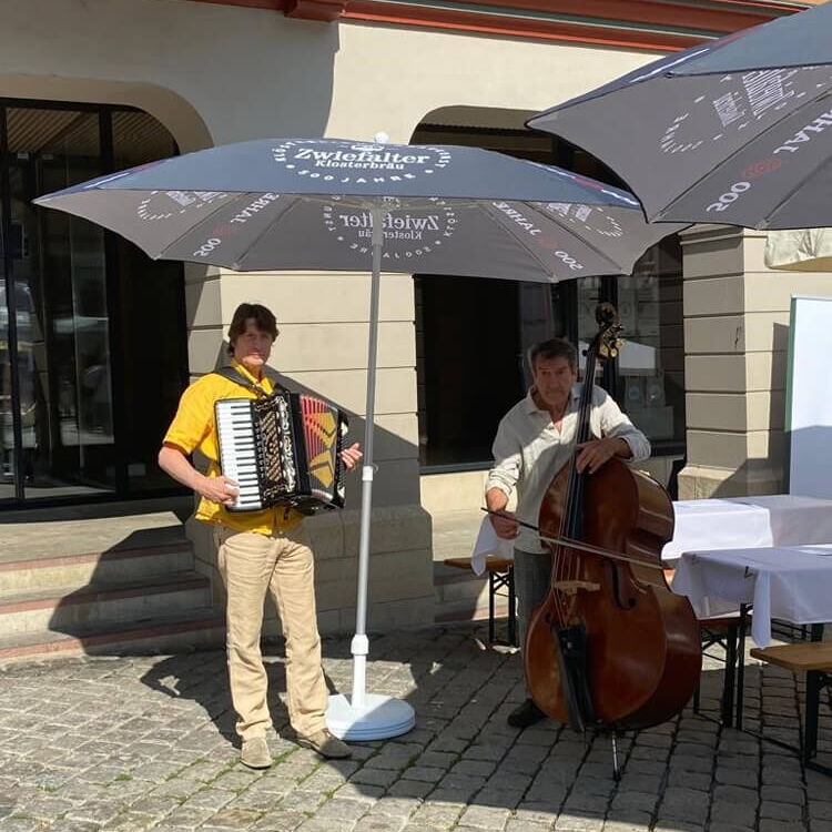 Nach drei Jahren Pause lud die Bürgerstiftung zum gemeinsamen Frühstück auf den Marktplatz ein. Wer einen sicheren Platz ergattern wollte, kam früh, packte das mitgebrachte Frühstück aus und ließ es sich bei schwungvoller Musik unter den Sonnenschirmen gut gehen. Manuel Rongen, Stiftungsrat der Bürgerstiftung, freute sich, dass viele unterschiedliche Menschen kamen: "Sie setzten sich zueinander und unterhielten sich. Das ist unsere Idee des Bürgerfrühstücks."