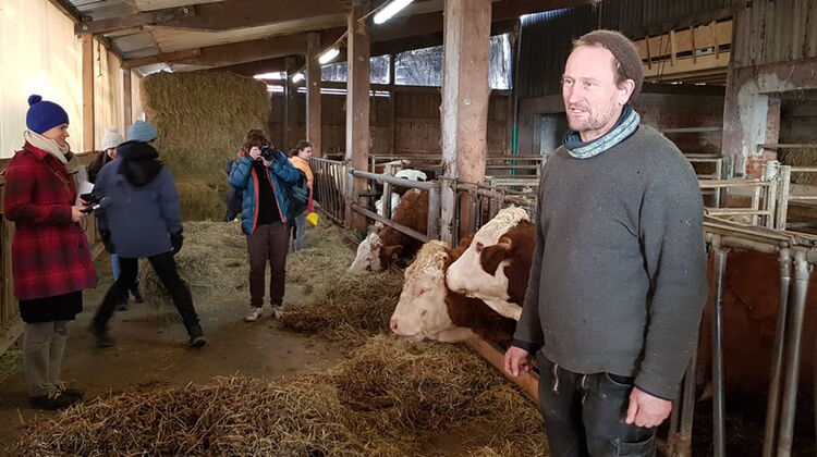 Beim Pressetermin am 24. Januar 2020 auf dem Berghof trafen sich die Vorstands- und mehrere Stiftungsratsmitglieder der Bürgerstiftung mit Vertretern des Schwäbischen Tagblattes und des SWR, um die Jugendlichen bei ihrer Arbeit auf dem Berghof zu begleiten und sich ein Bild von der Fördermaßnahme zu machen. Neben den Schülerinnen und Schülern berichteten deren Lehrerin Evelyn Sigloch und ihr Schulleiter Chris Portele über ihre Erfahrungen und den hohen pädagogischen Wert des Projekts. Die Kinder erfahren hier die „reale Landwirtschaft und keinen Streichelzoo“. Matthias Hamberger und Jutta Goltz von den Bonhoeffer-Häusern schilderten aus ihrer Sicht, warum sie das Projekt für förderungswürdig halten: Jugendliche werden hier gebraucht und spielen nicht. Sie erfahren das „echte Leben und echte Landwirtschaft“. Dafür haben sie den „Landwirt aus Leidenschaft“ Thorsten Bock als Landwirtschaftspädagoge angestellt. Er kümmert sich um die Jugendlichen und leitet sie pädagogisch sinnvoll an.