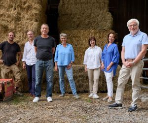 Bild 2: Von links: Landwirt Thorsten Bock, Matthias Hamberger kit , Manuel Rongen BüSti, Jutta Goltz kit, Ute Eichhorn, Constanze Schemann-Grupp und Reiner Thede, alle BüSti.