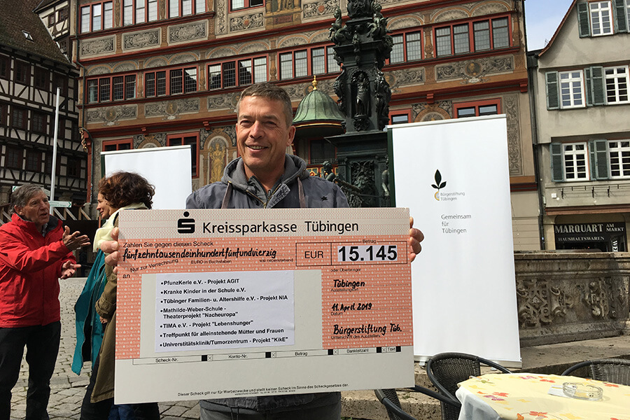 Jährlich verleihen wir den Preis der Bürgerstiftung Tübingen und den Ehrenamtspreis. Zudem fördern wir entsprechend unserem Stiftungszweck Jahr für Jahr Projekte, die diese Stadt bürgerschaftlich besser und lebenswerter machen.